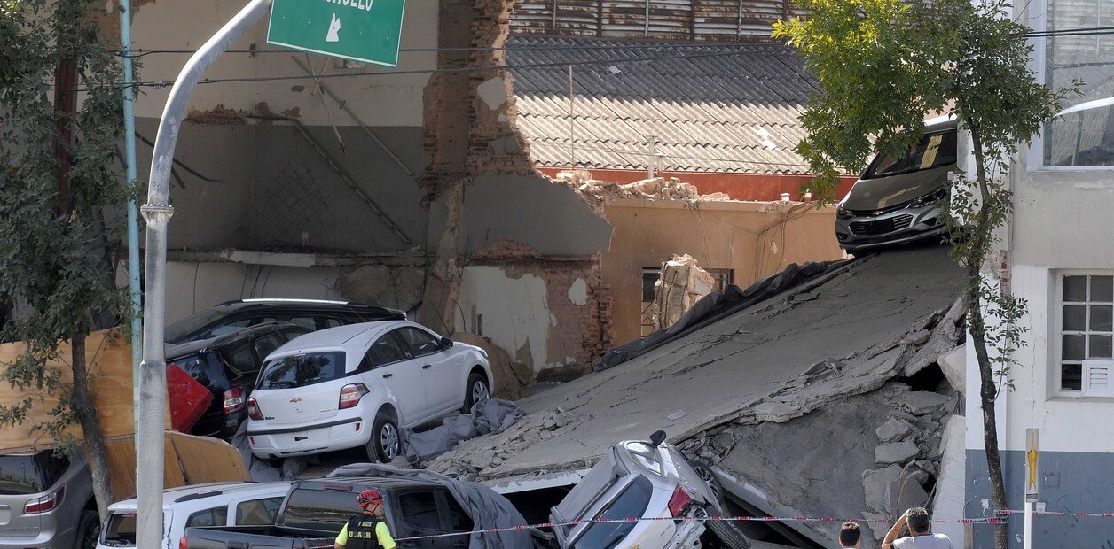 El peso de 7 autos provocó el derrumbe que pudo ser tragedia en una concesionaria